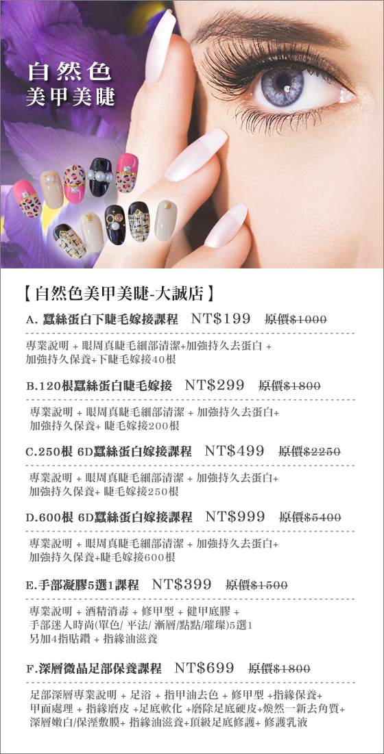 商品網址:自然色美甲美睫《大誠店》-美睫/美甲課程
